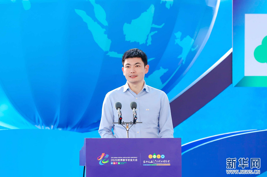 广州极飞科技有限公司创始人兼CEO彭斌在2020数字农业大会开幕式上发言。新华网发