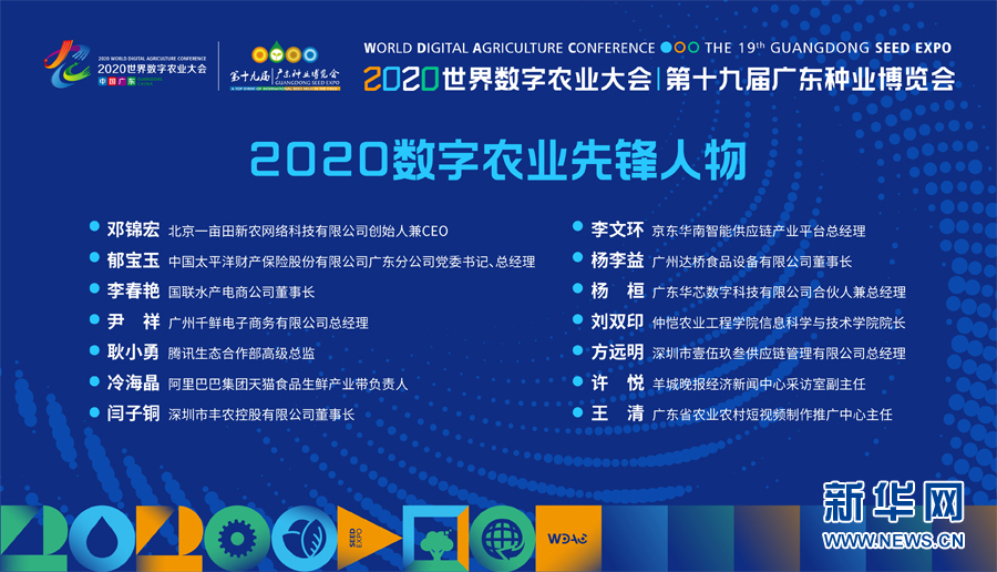 12月12日,2020世界数字农业大会、第十九届广东种业博览会在广州开幕。会上,发布一批数字农业先锋企业、先锋人物名单,并进行颁奖仪式。