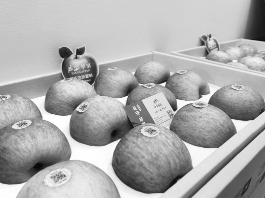 “延安馆主打产品是延安苹果,皮薄娇贵,凸凸真味。”据延安农业投资建设(集团)有限公司总经理陈斌介绍,公司负责延安馆及延安苹果广州体验店的运营,除了延安苹果外,馆内还展销延安黄小米、红薯、狗头枣等特色农产,以及延安腰鼓、剪纸等文创产品。