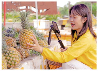 菠萝妹妹王小颖为徐闻菠萝直播带货。 谢伙荣 摄