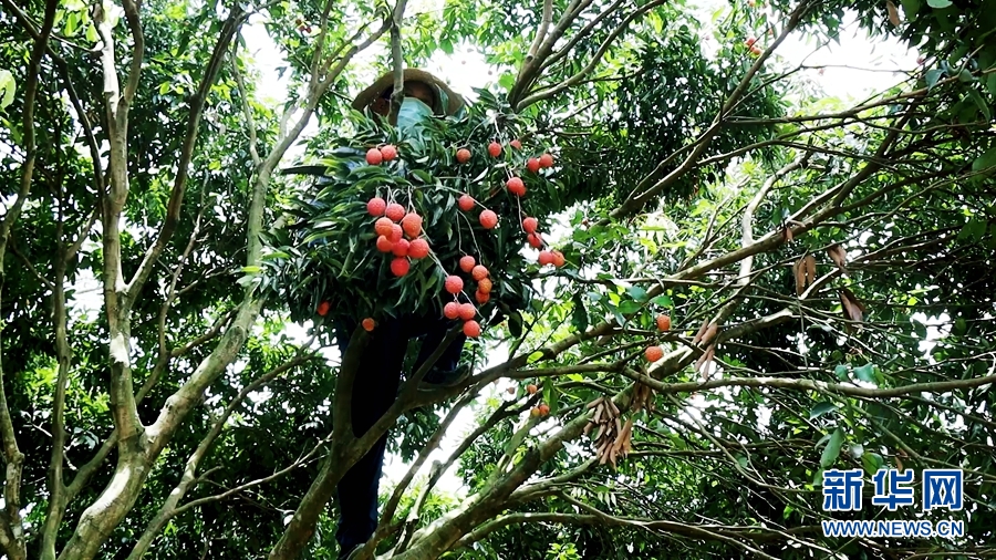 荔农忙着采摘成熟的果实。新华网发(罗素玲摄)