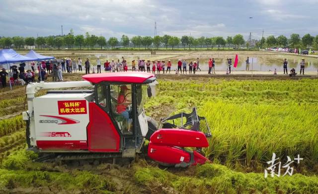 比赛当天,来自广州水稻主产区农机社会化服务组织的10名机手在田间地头同台比武,考验选手们的不仅仅是速度,还有收割作业过程中的操作熟练程度、作业效率、损失率、割茬高度、有无漏收等作业情况。