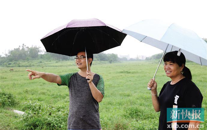 8月的雨水一阵阵洒在化州市石湾街道旺竹圩村翌日就要整合的荒地上,任雨水飘落,几头黄牛仍陷在遍地的青草香中,悠悠啃食。旺竹圩村支书潘伟权撑着伞站在两大片“草地”间的村道上,再次跟身边的村干部核对次日将要动工的细节。