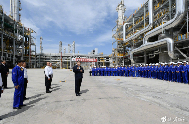 13日上午,习近平总书记来到国家能源集团榆林化工有限公司考察,走进中心控制室、来到项目现场,了解煤炭综合利用等情况。他强调,能源产业要继续发展,否则不足以支撑国家现代化。煤炭能源发展要转化升级,走绿色低碳发展的道路。这样既不会超出资源、能源、环境的极限,又有利于实现碳达峰、碳中和目标,适应建设人类命运共同体的要求,把我们的地球家园呵护好。(文字记者:张晓松、朱基钗 摄影记者:李学仁、谢环驰、燕雁)