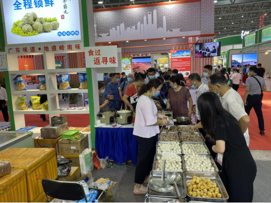 广东地处祖国大陆最南端,光热资源丰富,地域特色农产品众多。近年来,随着广东全面实施乡村振兴战略,一大批特色产品资源得到深入开发。广东展位各展台上,农产品种类丰富、极具特色,潮汕牛筋丸、桂圆干、香辣鸽、化橘红片、金柚月饼、丰硒良姜饮品、热带水果汁等产品人气爆棚,商务对接、品尝体验"粤"牌农产品的人络绎不绝。