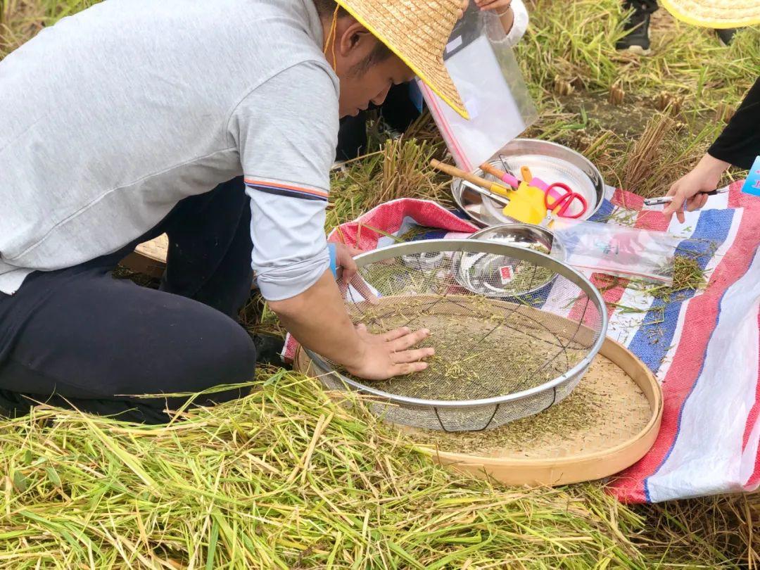 来自清远阳山的刘先生带领他的团队来到比赛现场,他表示:“大比武极有意义,可以让农机手之间进行交流,互相进步。农户种稻子不易,农机手便责任重大。”一粥一饭,皆思来处不易。稻谷的种植尚可推迟,收割却难以掌控。一方面时间紧张,一方面要考虑天气。 两年前,刘先生辞去在珠三角的管理层工作,回到清远老家,致力于农机事业。看着老农民在山头割稻的景象,他回想起童年时父母农作的辛勤与满足。“我们多做些事,良心也舒服。朋友都说,我每天看起来很快乐。做人嘛,就是这样的。”忆起自己事业上的转型,他感激又庆幸。 10名选手逐渐收割完毕,现场裁判员进入田间以平方为单位随机捡拾每辆收割机漏掉的稻谷粒,然后从作业效率、作业损失等环节进行综合评价,最终优胜者由扎金花