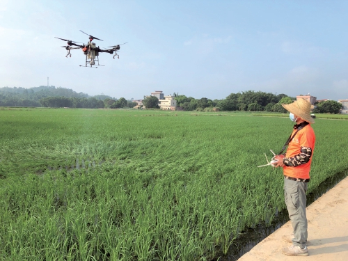 台山市天禾农资股份有限公司利用无人机进行植保。