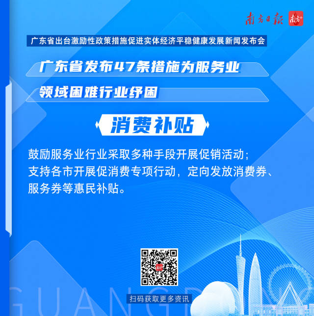 在发布会上,省发展改革委党组成员、副主任黄华东介绍,《广东省促进服务业领域困难行业恢复发展的若干措施》总共47条具体的政策措施,以降低企业生产经营成本,优化企业经营环境为着力点,支持服务业市场主体渡过难关、恢复发展,为广东省保持经济运行在合理区间提供有力支撑。