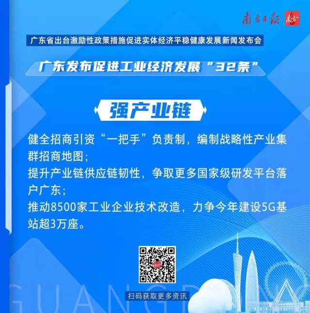 随后,省工业和信息化厅党组成员陈绩详细介绍,《广东省促进工业经济平稳增长行动方案》共八项行动32条。“广东将实施投资提振行动 ,今年推动8500家工业企业开展技术改造,建设超3万座5G基站。”陈绩表示,广东将全力以赴抓好落实,打好政策组合拳,确保市场主体能够享受相关政策红利,力争实现一季度工业经济开门稳。