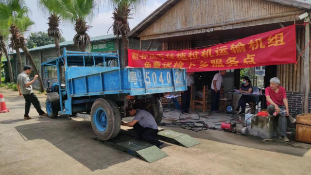 6月15日,江门市新会区农业农村局农机管理部门在三江镇开展"农机安全宣传月"活动及手扶拖拉机运输机组免费年审送检下乡工作和安全宣传,共对34辆拖拉机进行检验,免费派发408张车身反光贴,派发农机安全宣传小册子及单张68份。