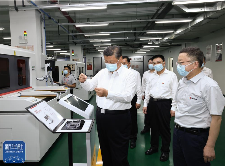 习近平先后走进企业激光科技馆、半导体面板激光智能装备生产车间,察看激光技术产业应用展品。习近平强调,高端制造是经济高质量发展的重要支撑。推动我国制造业转型升级,建设制造强国,必须加强技术研发,提高国产化替代率,把科技的命脉掌握在自己手中,国家才能真正强大起来。
