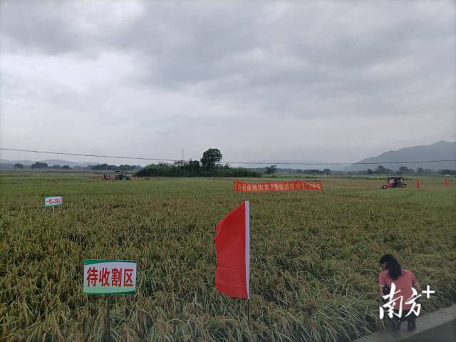 在汕尾市陆丰市,陆丰支农农机专业合作社的社员们冒着暑热出门、进田,抢收。合作社负责人颜裕裎介绍,今年,合作社早稻种植面积3000余亩,受台风影响,2~4成稻田出现倒伏情况,目前收割400~500亩。