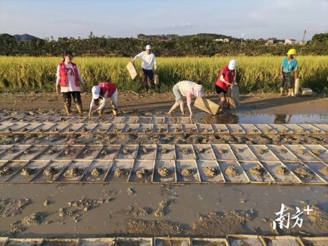 相比以前农户分散育秧,现在机械化育秧不仅解决了传统早稻浸种催芽出苗时间长、出苗不整齐、秧苗质量不佳等问题,还提高了机插秧比例,在节省劳动用工的同时,也有利于提高产量。“目前机械化育秧,一天能育秧500亩。”增城石乡农机专业合作社负责人沈燕芬介绍,这次试验了19香、耕香优280、耕香优579、清华杂优丝苗、荃优123等5个机育秧品种。