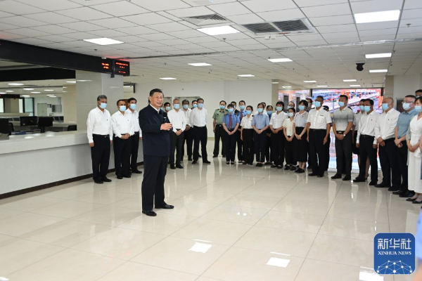 7月12日至15日,中共中央总书记、国家主席、中央军委主席习近平在新疆考察。这是12日下午,习近平在乌鲁木齐国际陆港区,同工作人员及现场办事人员亲切交流。新华社记者 谢环驰 摄