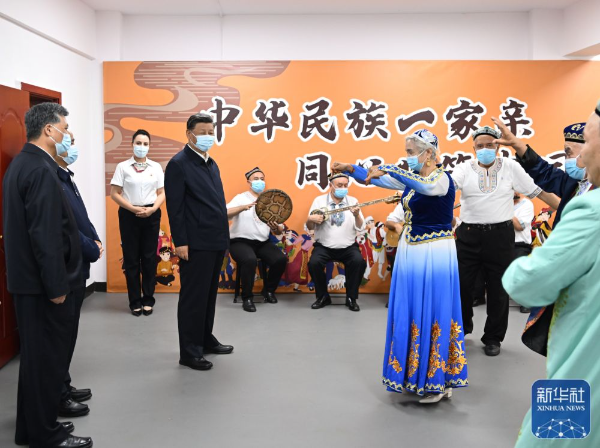 习近平强调,要铸牢中华民族共同体意识,促进各民族交往交流交融。中华文明是新疆各民族文化的根脉所在。要教育引导广大干部群众正确认识新疆历史特别是民族发展史,树牢中华民族历史观,铸牢中国心、中华魂,特别是要深入推进青少年“筑基”工程,构筑中华民族共有精神家园。要推动各族群众逐步实现在空间、文化、经济、社会、心理等方面的全方位嵌入,促进各民族像石榴籽一样紧紧抱在一起。