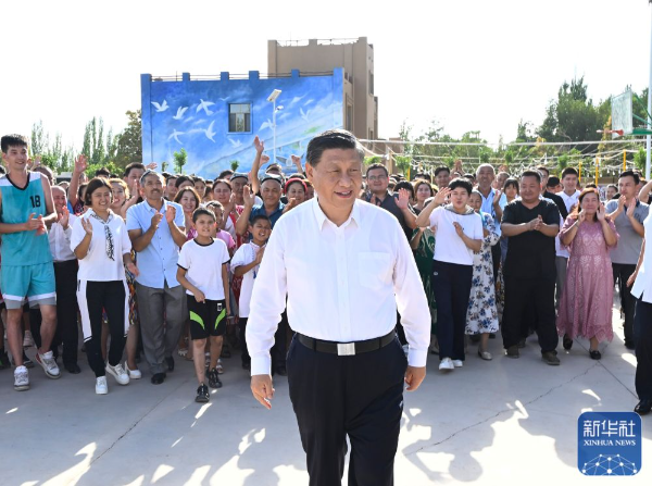 中共中央总书记、国家主席、中央军委主席习近平近日来到新疆考察调研,看望慰问各族干部群众。习近平强调,要坚决贯彻党中央决策部署,完整准确贯彻新时代党的治疆方略,牢牢扭住社会稳定和长治久安总目标,坚持稳中求进工作总基调,全面深化改革开放,推动高质量发展,统筹疫情防控和经济社会发展,统筹发展和安全,在新时代新征程上奋力建设团结和谐、繁荣富裕、文明进步、安居乐业、生态良好的美好新疆。