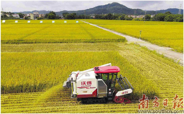 近日,在广州从化区生态优质丝苗米产业园内,收割机在收割早稻。南方日报记者 符超军 摄