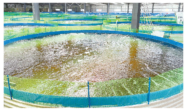 据项目负责人介绍,园区工业化循环水养殖池的水通过一系列的物理过滤、生物反应器以及微生物的作用去除氨氮、硝氮和亚硝氮,再通过水净化池、杀菌消毒、充氧、水质调整等操作,尾水流回到循环水养殖系统中,可实现养殖水的循环利用。