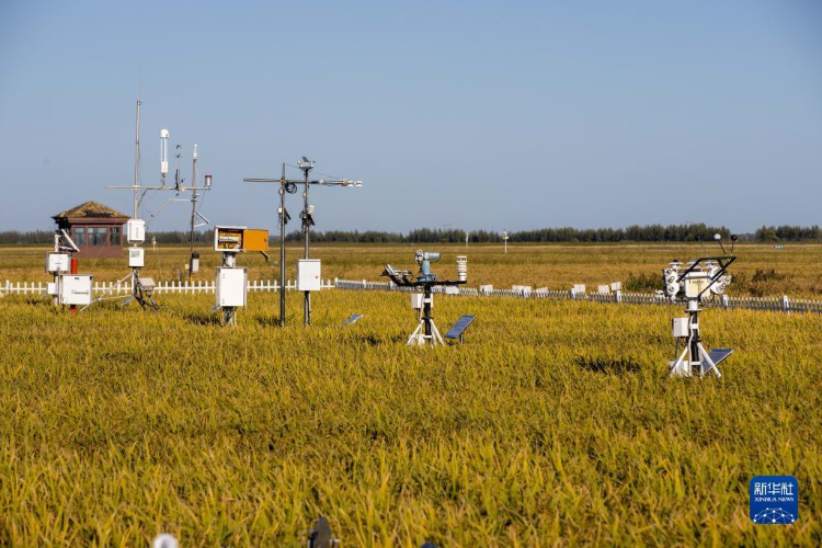 这是黑龙江省富锦市万亩水稻科技示范园内的气象监测设备(2022年9月2日摄)。新华社记者 张涛 摄
