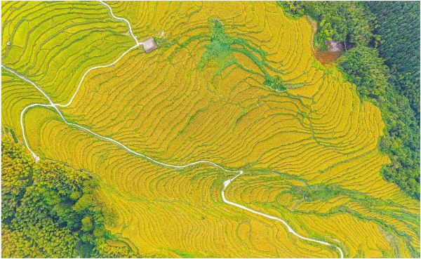 9月23日,位于清远连山太保镇的欧家梯田一片金黄,尽显秋日“丰”景。