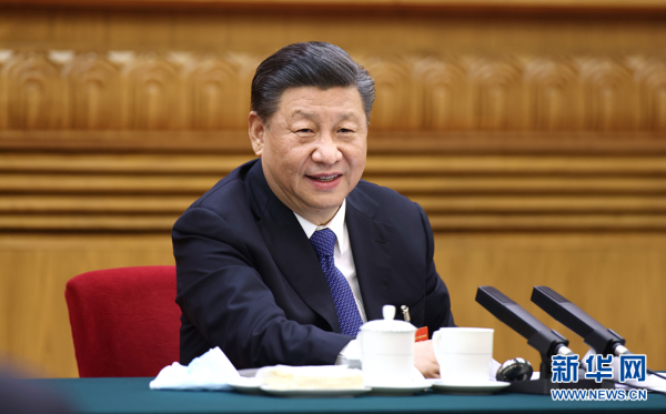 3月5日,中共中央总书记、国家主席、中央军委主席习近平参加十三届全国人大四次会议内蒙古代表团的审议。新华社记者 李学仁 摄