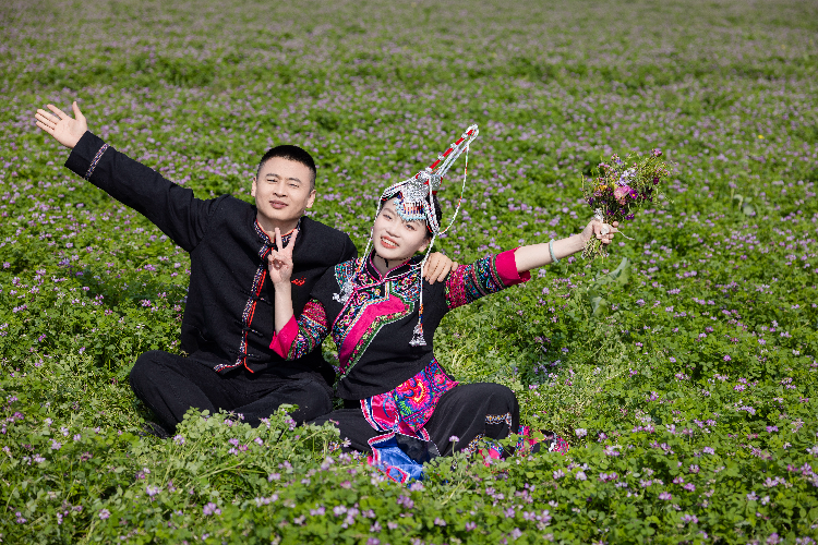 婚礼简约大气,将农村移风易俗与乡村绿美紧密结合,新人们向全省乡村发出“简办婚礼,真爱为本;互敬互爱,树好家风;建好家园,服务社会”的移风易俗倡议。这不仅是一场融合生态智慧与婚俗革新的盛典,更是打造“紫云英+”特色产业链的具体体现。