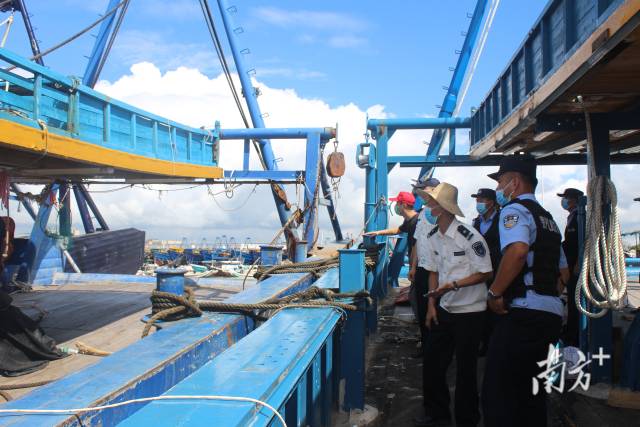 8月13日,离南海海域正式开渔剩下3天。在开渔之际,揭阳市惠来县公安局、县海洋综合执法大队联动神泉镇政府,结合当前新冠肺炎疫情防控工作,对神泉渔港辖区海陆重点部位同步开展全面性清理清查,加强对渔船综合管控,做到开渔渔民疫情防控、打击涉渔违法违规行为、开渔服务工作“三不误”。