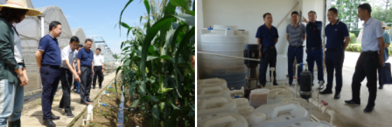 调研组首先到市农科所基地实地了解农机机库、排灌泵房、烘干机房、温室大棚、水肥一体化灌溉设备系统等农业机械设备设施情况。