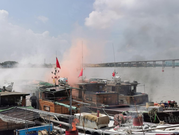 为加强渔港码头渔业船舶的停泊管理,提高广大渔业从业人员安全生产的防火责任意识和消防事故处置能力,2022年7月8日,由广州市农业农村局、市海洋综合执法支队、番禺区农业农村局主办,番禺区海洋综合执法大队和石楼镇人民政府承办的2022年广州市莲花山中心渔港消防安全应急演练活动在番禺区莲花山中心渔港码头举行。