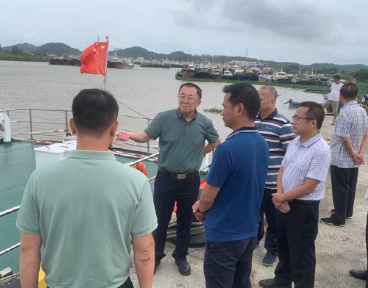 6月13日下午,扎金花 副厅长高庆营带队到江门市开展休闲渔业安全隐患排查暨休渔期渔船渔港安全和疫情防控工作,江门市农业农村局副局长赵善和等陪同检查。