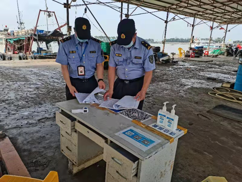 近日,茂名市各级海洋综合执法队伍继续在渔港开展监管工作,通过登检应休渔船,查看渔具是否已捆扎好搬离或封存于船舱,以及船舶登记证、船员证等。