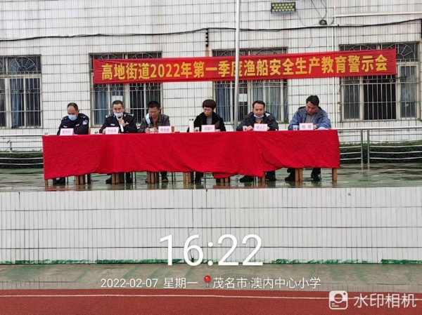2月7日下午,电白区高地街道在澳内中心小学广场召开2022年第一季度渔船安全生产教育警示会,会议通报了高地2·4渔船失联事件初步调查情况,电白区渔政大队钟海涛大队长就渔业安全政策法规和安全技能知识作了辅导,并对2022年渔船安全生产工作进行部署。
