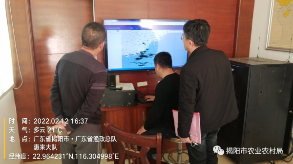 2月12日,揭阳市农业农村局副局长郭伟豪带队一行四人到惠来县检查渔业安全生产工作。检查组先到惠来县海洋综合执法大队应急值班室指挥中心查看值班记录,并查看广东省渔业安全生产通信指挥系统平台运作情况。