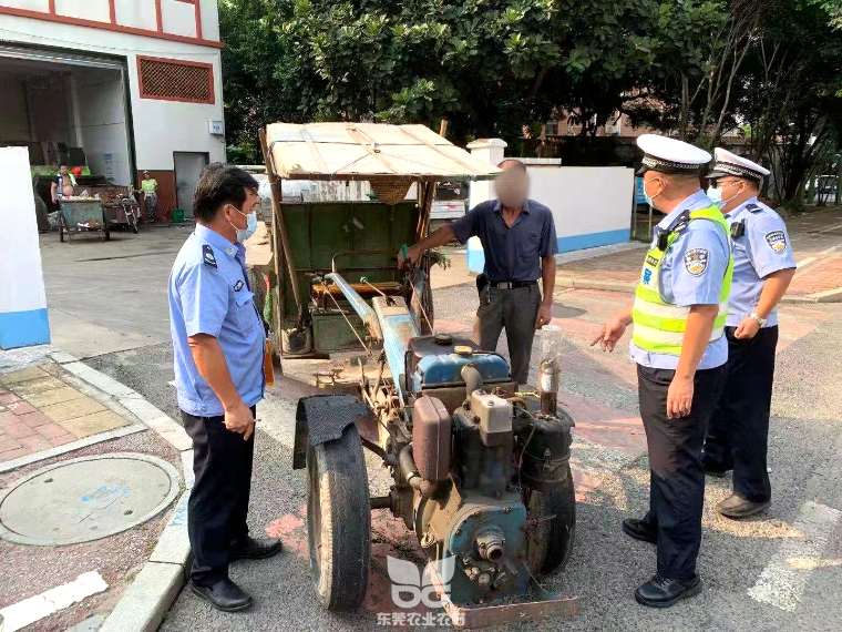 10月20日上午,广州市农机监理所联合花都区交警部门在花都区花山镇乐广高速公路路段开展拖拉机道路交通安全联合执法检查行动。