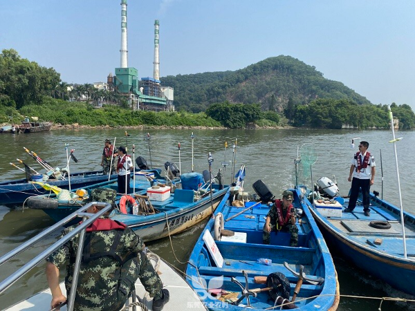 据群众反映,近期在我市滨海湾与虎门大岗山交界的磨碟河涌聚集了较大数量的“三无”船舶,部分“三无”船舶涉嫌存在违法作业捕捞水产品、挖采生蚝等行为,并在附近进行非法交易,严重扰乱休渔秩序,破坏海洋渔业资源。7月27日上午,由市海洋综合执法支队牵头,联合东莞海警局、虎门公安分局等多个部门,雷霆出击,成功捣毁该“三无”船舶聚集窝点。