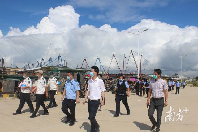 8月13日,离南海海域正式开渔剩下3天。在开渔之际,揭阳市惠来县公安局、县海洋综合执法大队联动神泉镇政府,结合当前新冠肺炎疫情防控工作,对神泉渔港辖区海陆重点部位同步开展全面性清理清查,加强对渔船综合管控,做到开渔渔民疫情防控、打击涉渔违法违规行为、开渔服务工作“三不误”。