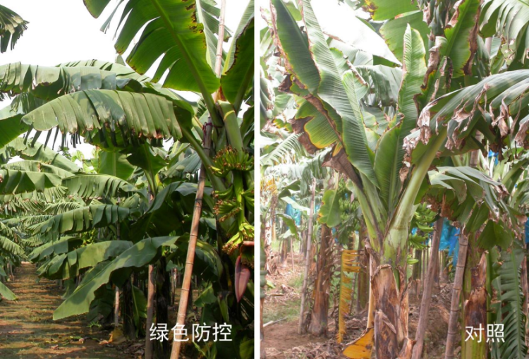 香蕉可同韭菜、豆科作物等间作,发病田块避免连作,可适时与水稻、甘蔗、玉米等作物轮作,以减少土壤中的香蕉病原菌。
