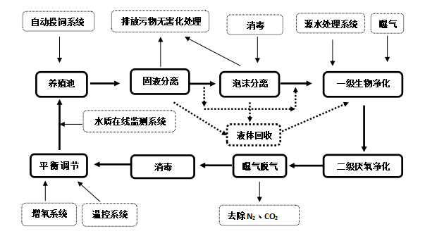 工厂化循环水养殖是一种利用生物学、环境学、机械学、电子学、自动化学和微生物学等科学技术进行集成与创新,创建一个可控养殖生态系统的新型现代养殖技术。一套完善的工厂化循环水养殖系统应包括:养殖池、固液分离、泡沫分离、生物过滤、曝气脱气、紫外/臭氧消毒等设施设备,且需配备源水处理、增氧、温控和智能化辅助生产(水质实时在线监控、自动投饲等)等配套生产系统。循环水养殖系统的集成设计需根据不同养殖品种,进行物质能量衡算,确认负荷匹配关系,实现功能模块优化,单元精准设置,集成系统标准设计。