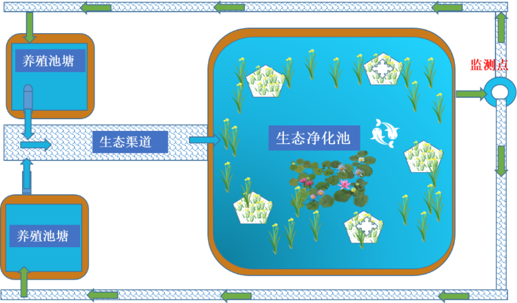 利用物理沉淀和系统植物、微生物等综合净化作用进行养殖尾水处理,实现循环利用或达标排放。