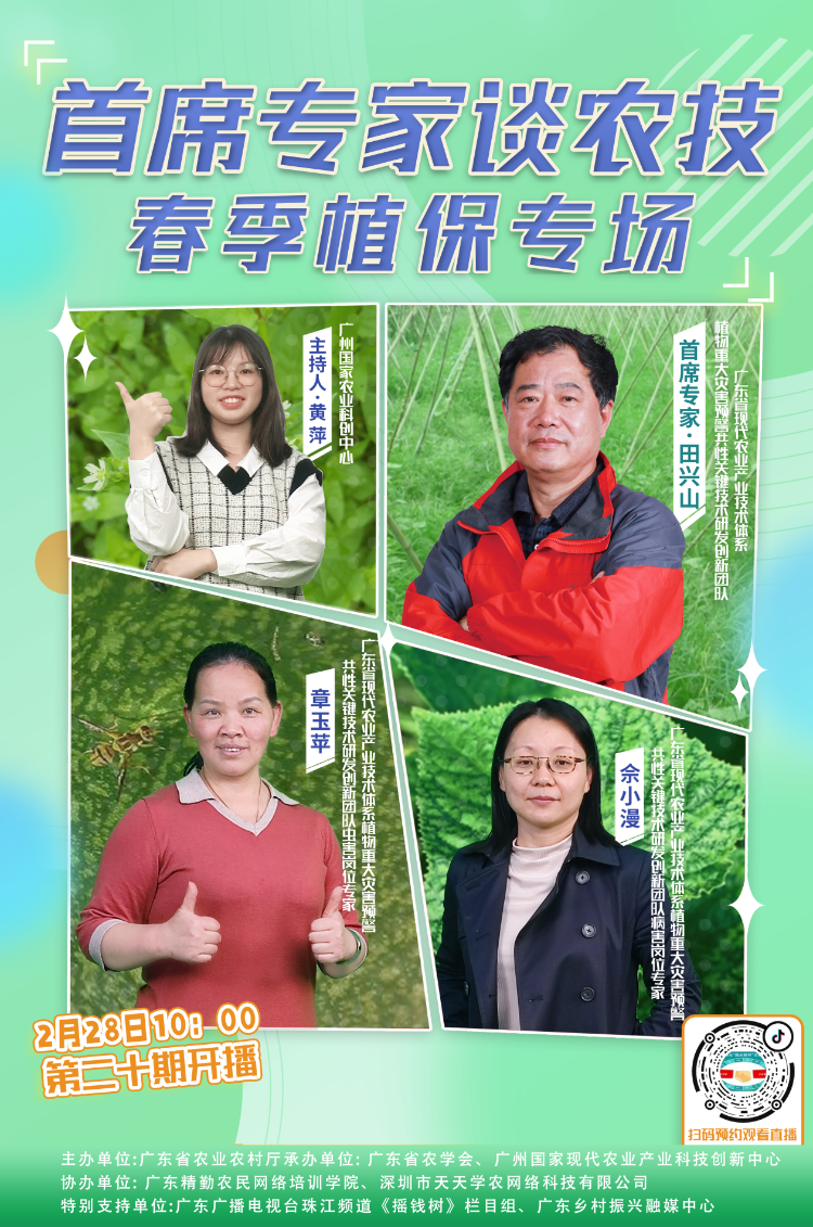 《首席专家谈农技》直播系列活动由扎金花app 主办,广东省农学会和广州国家现代农业产业科技创新中心承办,直播活动根据广东的农耕时节、种养特点等因时因事需求,邀请我省51个现代农业产业技术体系创新团队首席专家和岗位专家为大家讲解农业全产业链各类实用技术并进行互动交流。