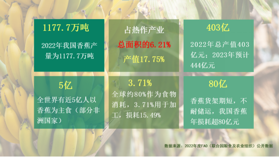 在直播中,首席专家李春雨强调:中国香蕉产业在全球处于领先地位,不仅是世界第二大香蕉消费国,还是重要的香蕉生产国,在推动农业增效、农民增收方面发挥着重要作用。我国香蕉种植面积在全球排名第三,通过科技创新和良种选育,提高了单产水平,使得总产量保持在全球前列。同时也指出香蕉土传病害流行、传播及发病速度极快,对其经济价值造成一定程度的损失。