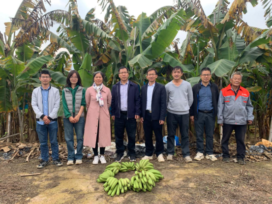 香蕉菠萝创新团队是我省建设的现代农业产业技术体系创新团队之一。自2019年启动建设以来,在首席专家李春雨研究员带领下,围绕“促进提质增效、服务产业发展”总目标,精心组织,协作攻关,取得了一系列创新成果。自主培育了‘粤蕉1号’、‘中蕉4号’等11个香蕉新品种,‘中蕉8号’入选农业农村部 “2023年十大热带作物重大技术”,‘中蕉4号’连续5年获得2019-2023年度广东省主导品种,‘美食蕉1号’入选2022年度广东省主导品种。研发的低乙烯粉蕉保鲜技术已成功应用于粉蕉商业物流,能延长粉蕉常温贮运保鲜时间3至4倍。研制的蕉园精量施肥机集成了开沟、施肥和覆土三大功能,提升了蕉园管理效率,有助于减少环境污染。据了解,自团队成立以来,围绕新品种选育与栽培、病虫害防控、采前处理、采后保鲜和产业经济等共性关键技术进行研究,为香蕉、菠萝产业发展提供技术支撑。目前团队获得农业农村部植物新品种权10余项、获全国农牧渔业丰收奖三等奖1项、广东省农业技术推广奖二等奖4项、入选广东省农业主推技术5项、申报发明专利40余项、发表研究论文80余篇。