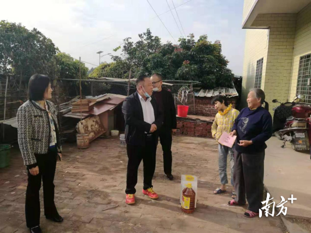 丘洪松一行在镇、村干部和工作队陪同下,深入到石陂、大成、永生村4个监测户代表家中进行走访慰问,送去两节慰问品,同时详细了解监测户的家庭状况。
