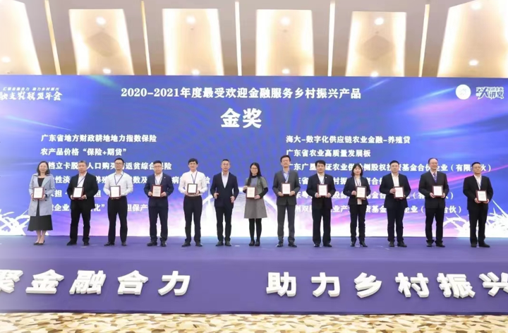 恒健控股公司旗下农业基金4只子基金荣获2020-2021年广东最受欢迎金融服务乡村振兴产品金奖