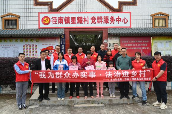 法制盛邦(东莞)律所党支部书记叶小玉表示:通过开展“党建共建+法治共治”帮扶活动,法制盛邦(东莞)律所将更好发挥党组织的战斗堡垒作用,履行好党建职能和社会责任,充分发挥律所在乡村治理、律师在法治服务等领域的优势,扎实开展“我为群众办实事”和法治乡村建设活动,推动星耀村和径南镇构建自治、法治、德治三治融合的乡村治理体系,在平安法治建设中贡献律师智慧和律所力量。