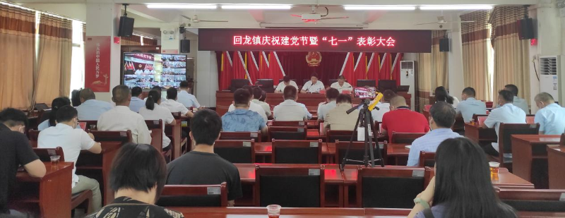 今年是中国共产党成立101周年。为增强广大党员干部的党性意识,让全体党员坚定理想信念,让老党员深切感受到党的温暖关怀,让年轻党员形成创先争优的浓厚氛围,“七·一”前夕,回龙镇召开2022年庆祝“七·一”建党节暨表彰“乡村振兴担当作为好支书”网络直播大会,会议由全体班子成员、各党(总)支部书记、“光荣在党50年”党员代表、镇中层干部和全镇党员约400人在线或现场观看了表彰大会的直播。