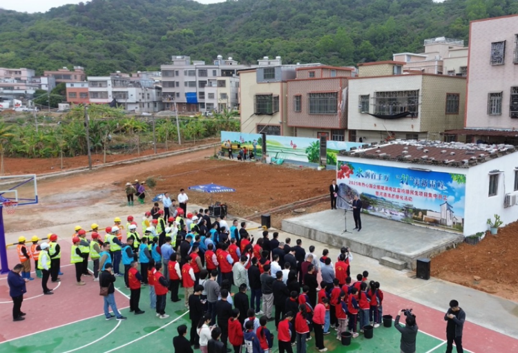在济美村植树活动现场,来自省水利厅、省韩江局、省水文局汕头水文分局等单位100多名干部职工和当地领导干部、群众、师生代表热情高涨,干劲十足。大家挥锹舞锄,培土育苗,担水浇树,协同配合,形成“政企联动+大手牵小手”的协作阵容,彰显乡村振兴多方共治特色。经过3小时的辛勤劳动,140余株紫花绣球风铃木、麻栋、桃花心木等苗木在指定区域“落地生根”,为济美村新增了一抹靓丽绿色,助力绿美广东生态建设。