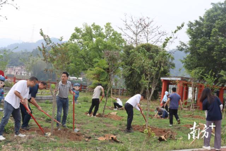 春意盎然,绿满山川。为深入贯彻广东省“绿美广东生态建设”部署,驻大埔县三河镇帮镇扶村工作队(下称“工作队”)在旧寨村、汇东村组织开展“帮扶林”种植活动,种植紫薇、黄花风铃木等景观苗木,为古镇三河再添生态底色。