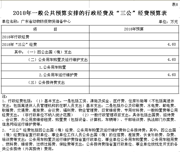 2018年广东省动物防疫物资储备中心部门预算