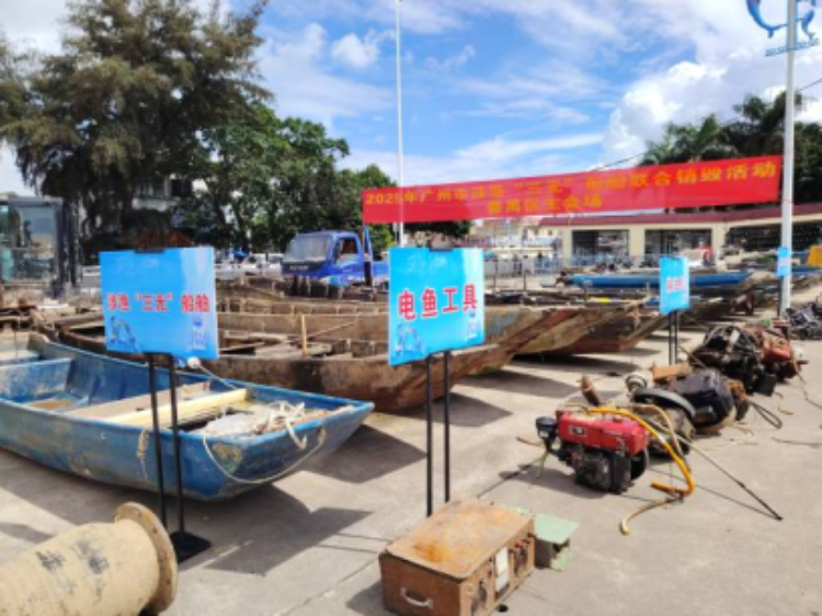 广州市2025年涉渔“三无”船舶联合销毁暨渔业船舶消防救生应急演练活动。
